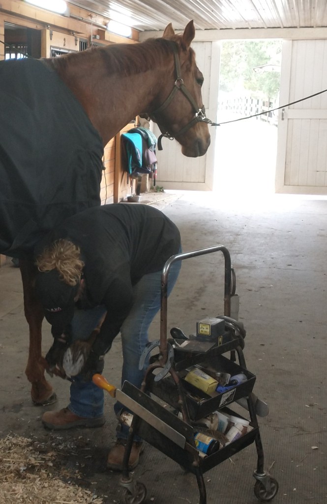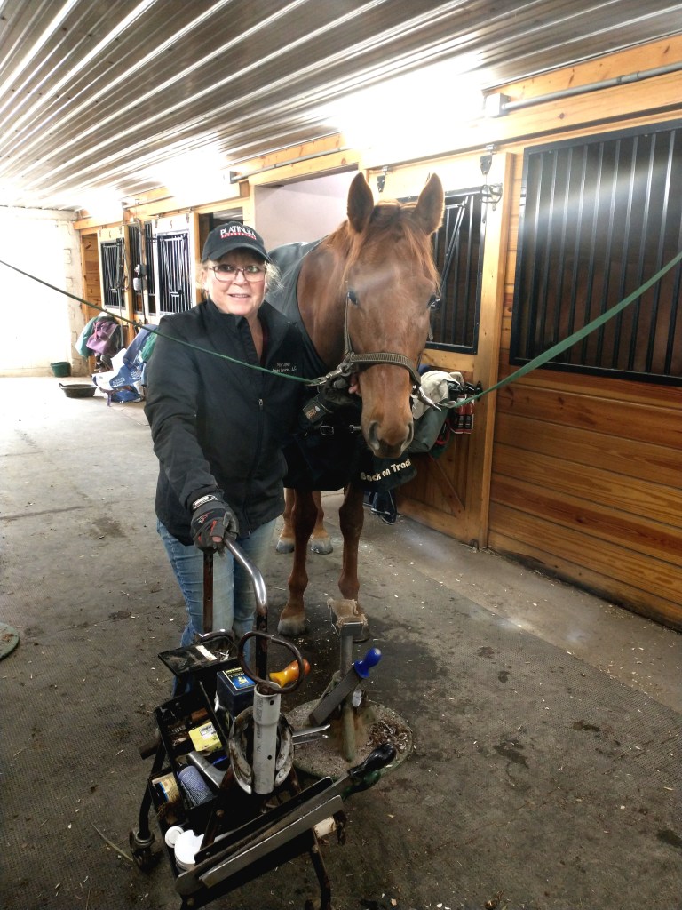 Patty took a lot of clinics with Dr. Strasser and others, and she did a lot of research on her own because she didn’t feel like there was one right way for every horse. It took a couple of years for Patty to jump into being a farrier full-time, but now she has a very full practice.