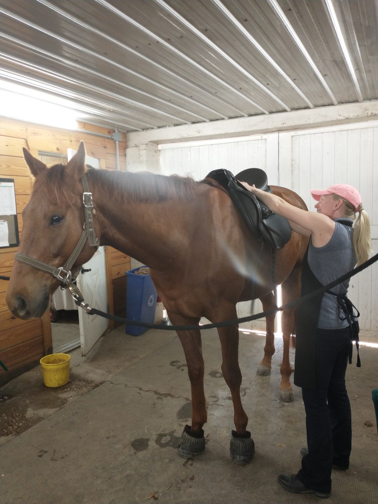 It has been said that a correctly fitting saddle is as important to an equine athlete as correctly fitting shoes are to a human athlete. In fact, proper saddle fitting is important for both horse and rider. The saddle on our horse’s back is our connection to the horse when we are riding. Anatomically, that region consists of the skin, with thousands of nerve endings, the epaxial muscles, the spinal vertebrae, and the junction of the ribs and vertebrae. If a saddle does not fit a horse properly, pain, performance issues, and behavior problems can result. Signs of saddle fitting problems include but are not limited to obvious sores; white hairs under the saddle; swelling under the saddle; sensitivity to palpation or grooming of the saddle area; “cold backed;” resistance to work; tail swishing; not traveling straight; general bad attitude; difficulty with collection; and many other subtle performance issues.
