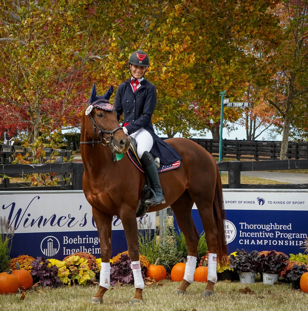 This experience has been nothing short of fantastic. I met and made new friends from all over the US and Canada. I saw the Thoroughbred breed through a different lens showing the true versatility of the breed. Most importantly, the relationship with Mac and the time I have spent developing it showed up in the ring and around the park. There is no question Mac is special and this is just the beginning of the fun we will have ahead.