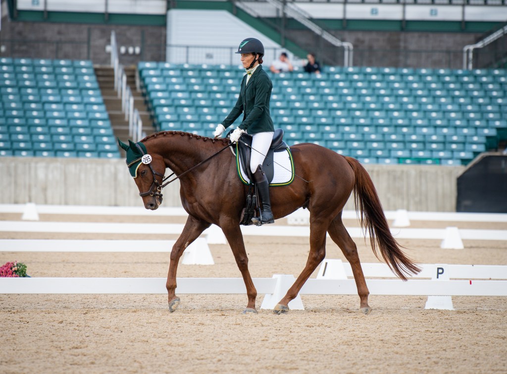 His test in the Rolex Ring had a few bobbles but overall I was pleased scoring 67.4%. It was windy with some rain and a big atmosphere in the arena. You have to live in the moment competing in the Rolex Arena and I did.