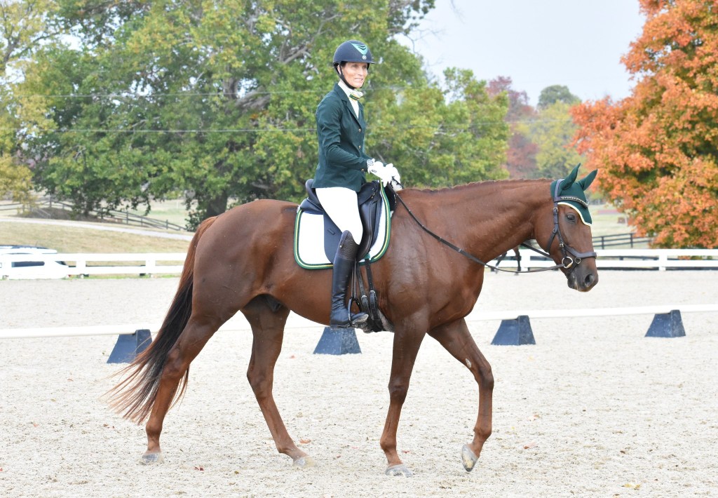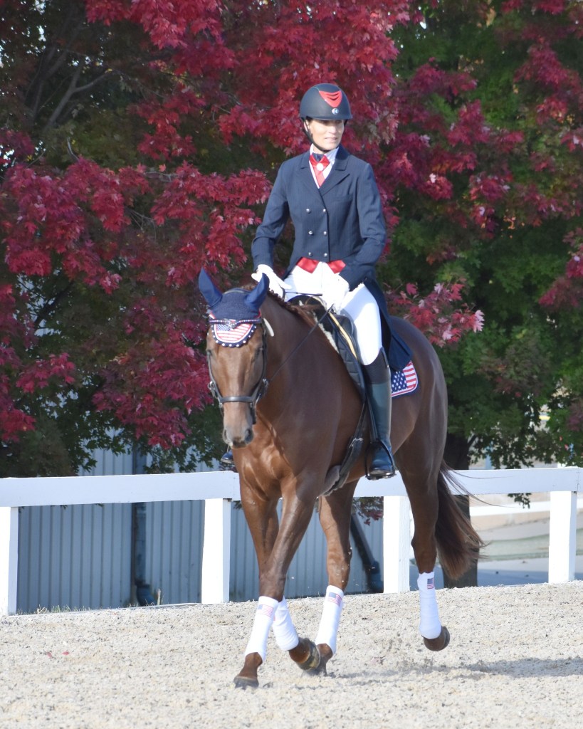 Our Dressage time was late in the day which provided time for a hack in the morning, braiding, and a nice relaxed warmup. His fan club started to arrive early afternoon. It was incredibly humbling to have so many people travel hours to watch Mac and me compete. I was incredibly excited to meet Mac’s breeder Christine Hansen whom I connected with early on in Mac’s journey to the Makeover. Christine came equipped with her camera and over the days that would follow she took many beautiful photos of Mac and me. Christine proudly posted about our journey and the competition on FB which helped keep everyone in the loop. It was very clear she was happy to see Mac embracing his life off the track and succeeding. I feel so fortunate that because of Mac our paths have crossed and a friendship has developed.